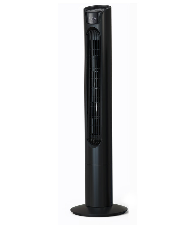 Op zoek naar verkoeling tijdens warme zomerdagen of broeierige nachten? De A-Flow Pure 40W torenventilator combineert moderne technologie met stijlvol design voor een comfortabele, aangename luchtcirculatie in huis of op kantoor. Met zijn slanke, zwarte behuizing en een helder LED-scherm aan de bovenzijde is deze ventilator niet alleen functioneel, maar ook een ware eyecatcher in elk interieur.